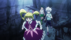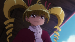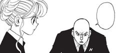 Biscuit is recommended by Killua to Kurapika, who is looking to proceed tabs on some of the Kakin Empire's Princes by having trusted Hunters exist hired every bit their bodyguards. Although she initially gets furious at Kurapika, she is before long pacified when he flatters her, and she resolves to do anything he says. She is eventually selected past Prince Marayam.[5]