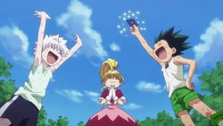 Beige, forth with Gon and Killua, at the last event of Greed Isle